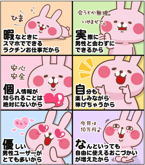 スマホを使った男性とのやり取りですが、実際のLINEや通話とは違い全部アプリの中でコンタクトするので個人を特定される心配はありません。